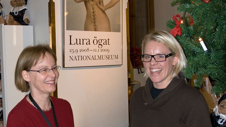 Publiksuccé! 100 000 besökare har sett utställningen Lura ögatNu är det officiellt: utställningen Lura ögat är en succé. Igår, onsdag 10 december kl 15.15, kom besökare nummer 100 000 för att köpa biljett. Josefine Brantström, arkitektstudent vid KTH, blev mäkta förvånad då Nationalmuseums Överintendent Solfrid Söderlind överraskade henne med katalog och entrébiljetter.Lura ögat visar över 150 kon